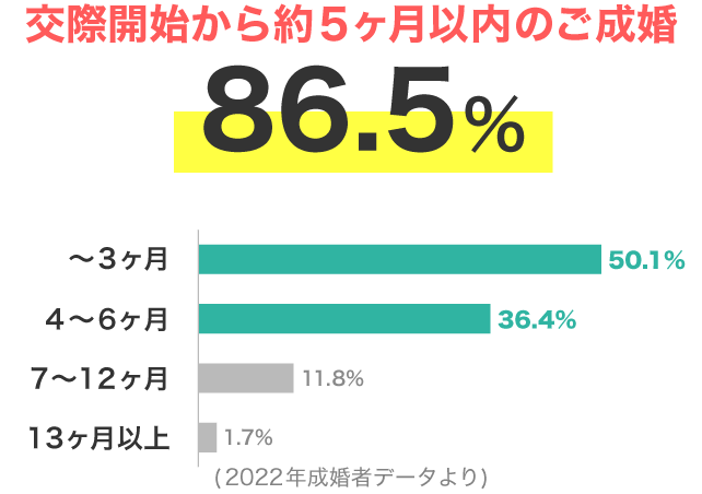 ご自身の価値観やライフスタイルに合ったお相手と出会いやすい環境が整っています。