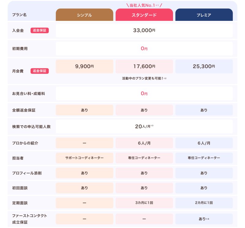 ▼ゼクシィ縁結びエージェントのプラン詳細▼